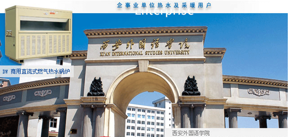 西安外国语学院(XI’AN INTERNATIONAL STUDIES UNIVERSITY) 为西安外国语学院为中国西部地区的著名院校,学校总采暖面积约86000平米,共使用A.O.史密斯商用直流式燃气热水DW-1810型14台,其中13台提供整个学校的采暖需求,另外一台配备8立方热水箱,提供190户人家的生活热水供应。该项目为A.O.史密斯商用产品在西北地区学校应用的典范。产品性能稳定,维护简单,得到校方的充分认可。